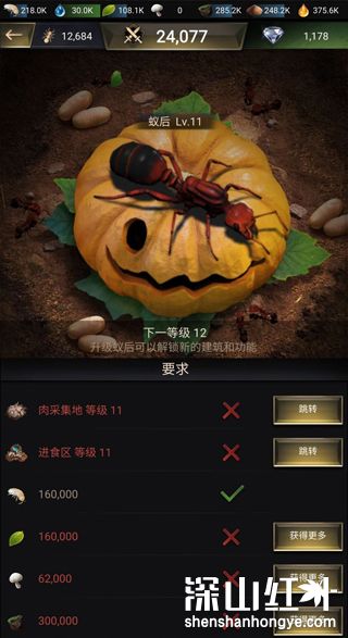 3、存储大量的粮食作为你们的后勤保障,通过训练来升级工蚁的战斗能力。