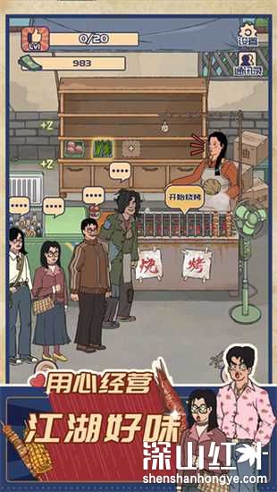 1、解锁童年的烧烤,售卖它们,进行战略规划,推动剧情发展,扩大店内发展。