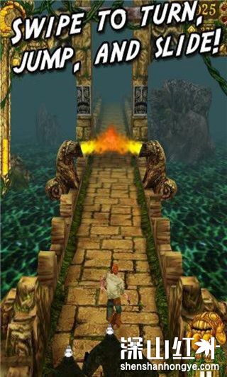 2、游戏采用快节奏的设计,玩家需要在神庙中奔跑、跳跃,逼近陷阱和敌人,尽快逃离神庙的危险环境。