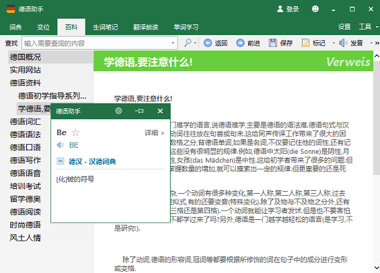 德语助手pc电脑版是一款在线德语教育软件,软件功能强大操作简单软件功能以德语词典为基础,包含德汉、汉德、德德、德英词典、德语发音、基础词典、发音、短句翻译等特色功能。