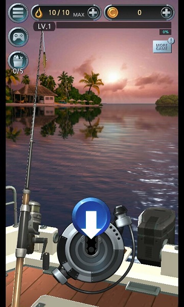 3、按动屏幕上的按钮就能够给鱼施加伤害,让鱼无法逃脱,你就可以轻松的把鱼给钓上来了,十分简单。