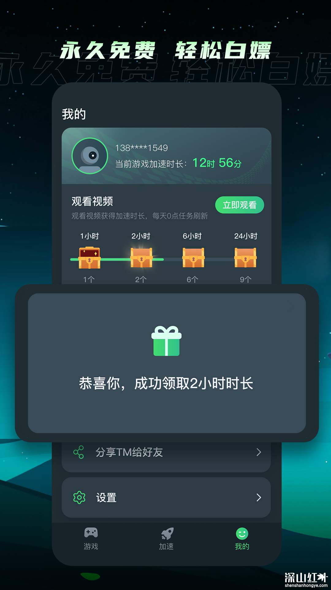 打开TM加速器客户端,点击右上角【设置】按钮,找到并点击【口令兑换】,输入口令:TM66