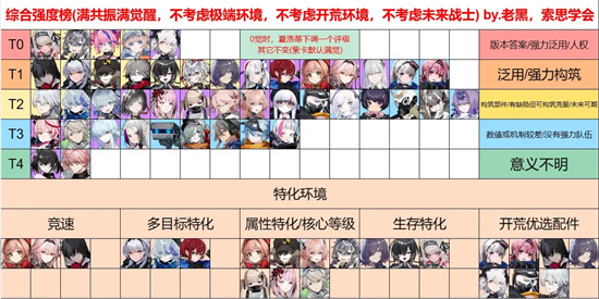 T3强度榜:阿知波、晃、伊尔、山岚、波克士、遥、朱利安、雷火、塔拉、艾略特。点评:没什么实际用处,除非是真爱党,否则在实战中还是不要派上场了,很影响实战体验。T4强度榜:奈弥、伽罗尔。点评:被玩家忽略的下水道,基本上是R级角色,没有什么意义,当仓管都不够资格。这只是开服初期版本的强度榜,并且与实际配队有关,随着版本更新,榜单会有新角色加入,会发生重大变化。根据当前的版本进行合理配队,选择核心,然后搭配强势角色和完美拼图,就可以在游戏中真正做到强势。