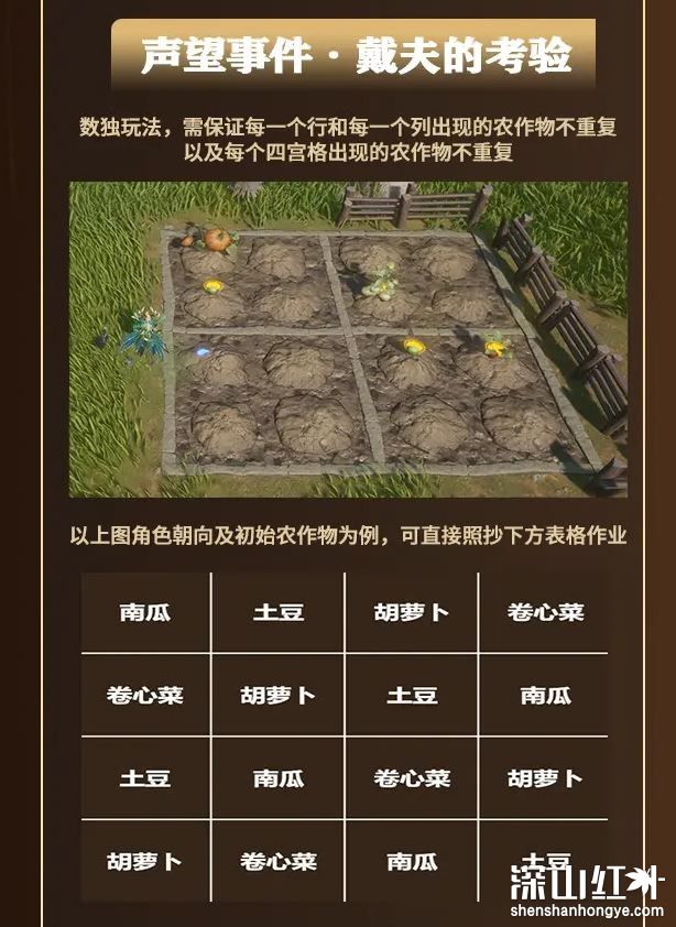 以下图角色朝向及初始农作物为例,可直接照抄下方表格作业