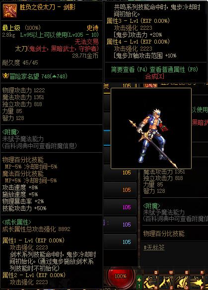 dnf剑影胜负之役太刀属性怎么样
