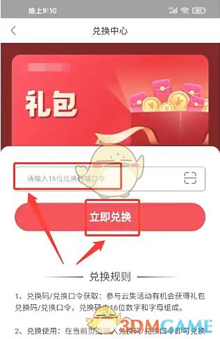 3、进入兑换中心,输入兑换码或口令,点击(立即兑换)选项。