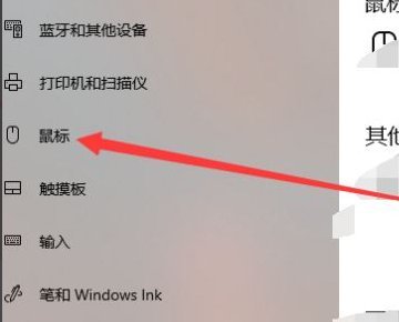 2、打开了设备选项界面中,在左侧选项中单击鼠标选项卡。