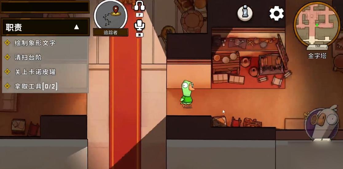 金字塔地图是极具特色的场景之一,其独特的建筑结构和任务机制为游戏增添了更多策略性。该地图的职业分布与其他地图存在差异,部分职业仅在金字塔地图中拥有特殊互动能力。鹅阵营的观鸟者、侦探、工程师等职业在金字塔中能发挥关键作用,而鸭阵营的术士、静音鸭等则能利用地形优势制造混乱。中立阵营的呆呆鸟、鸽子等角色在该地图的获胜条件与其他地图一致,但需结合环境调整策略。