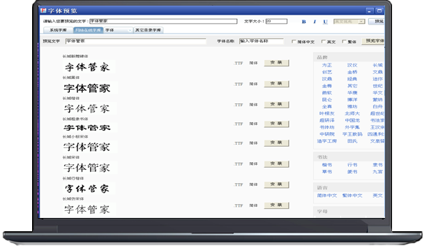 字体管家软件是一款方便管理和安装字体的工具软件,它可以帮助用户灵活地管理自己的字体库。以下是它的一些特点: