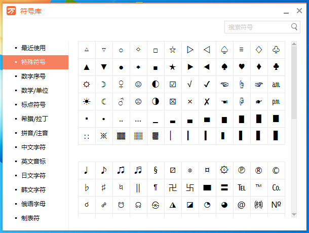 3.成功进入通用五笔输入法符号库界面后,我们在左侧功能栏选择【特殊符号】,然后选择你需要的符号,点击进入。