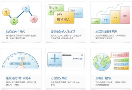 1、科学打字教学先讲解知识点,再练习,最后过关测试