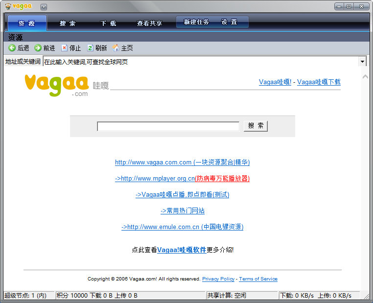 vagaa是一个类似电驴的资源共享工具。vagaa致力于点对点互联网的建设和运营,帮助大众享受宽带互联网带来的便利和快捷。无论是电影、音乐、动画、游戏还是电视节目,只要你安装了,你的电脑就会变成一个连接整个世界的互动娱乐中心!