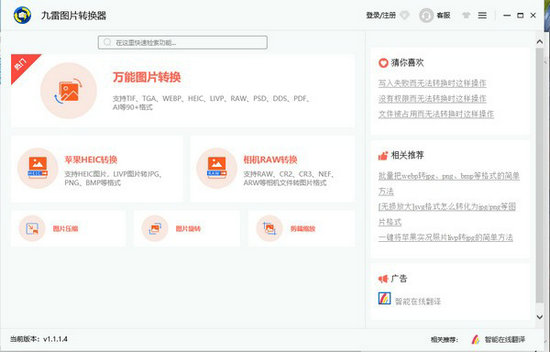九雷图片转换器软件是一款非常实用的图片转换工具软件,九雷图片转换器软件的功能非常强大且实用。用户可以使用软件把图片转换成各种各样的图片格式,支持大量的图片文件格式,包括tif、tga、jpg、png等多种图片格式。软件还可以帮助用户完成压缩、裁剪、旋转等多个操作。是一款非常不错的图片转换器软件。