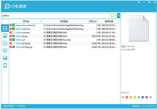 闪电搜索电脑版软件是一款非常优秀的文件搜索工具软件,闪电搜索软件的搜索功能十分的强大。软件的搜索速度非常快,能够在众多文件当中,以非常短的时间把用户想要的文件找出来,简直是快如闪电,就跟软件的名字一样。软件还能够支持分类搜索,让用户搜寻不同类型的文件变得更加容易。