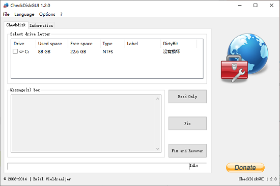 checkdiskgui中文版是一个简单的磁盘工具,软件可以快速检测硬盘的损坏区域,并且通过稳定修复,来让硬盘正常运转。所有的数据和空间都能完美进行还原,帮助用户解决所有的磁盘问题,非常的方便。