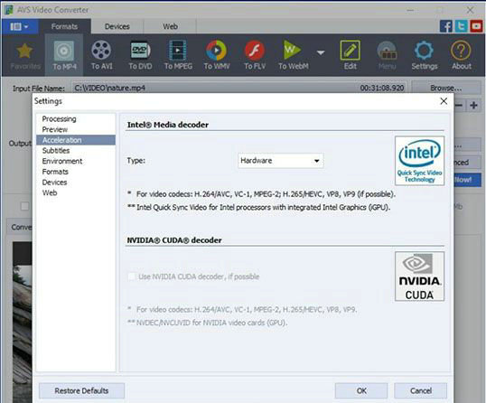 3、使用硬件英特尔®媒体解码器与英特尔®快速同步视频技术