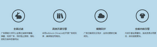 1、采用Adblock-ChinaList的开源广告规则库,确保稳定而高效。