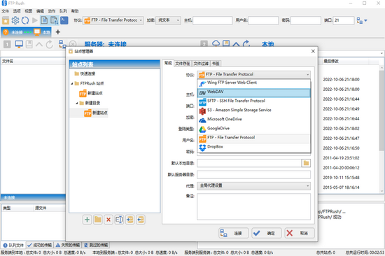 FTP Rush软件是一款实用性很高、操作简单、功能强大、运行稳定的FTP软件。该软件拥有的服务都非常的实用并且每一项都是免费提供给用户使用的。同时还支持SFTP协议以及TFTP协议,无论是上传下载文件都非常的高效便捷。